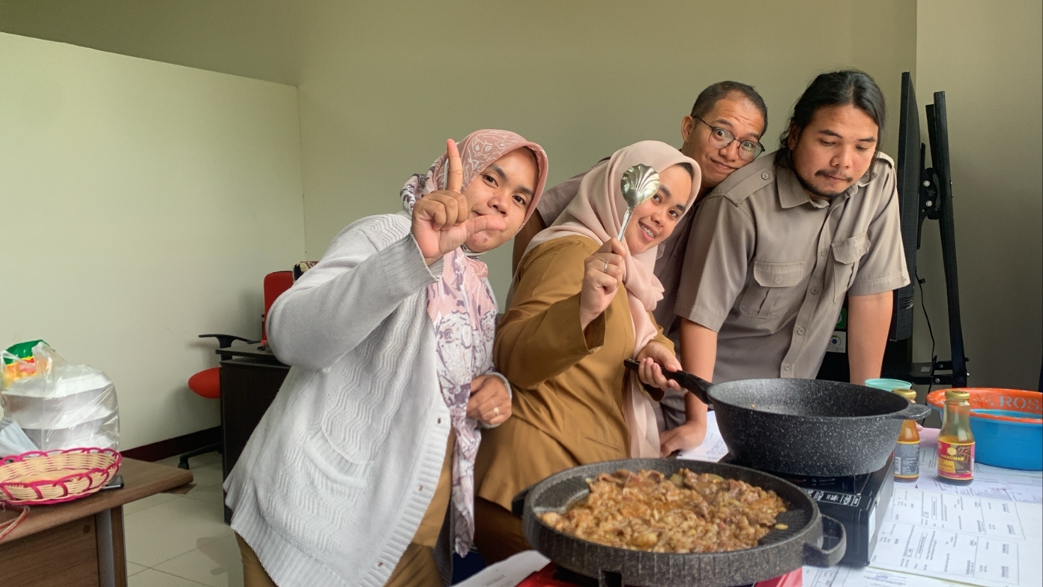 Dengan slogan "Kita loh TIK" siang itu Kepala Bidang Budy Hartika EP menunggui stafnya Riry, Novi dan Rahma memasak daging bulgogi diruang kerjanya.